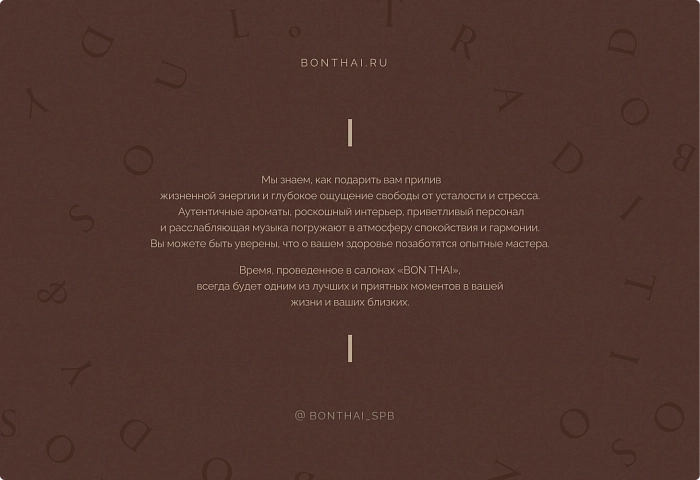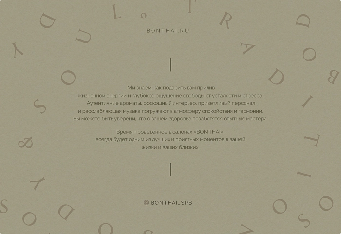 В Bon Thai возвращаются вновь и вновь: познакомившись с тайским массажем, вы ни за что не захотите от него отказаться! Вот почему мы ежедневно получаем положительные отзывы от довольных клиентов:
